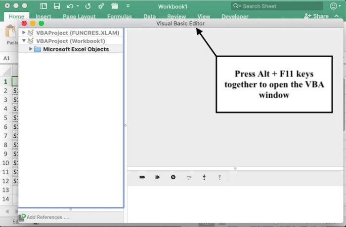步驟1 - 按Alt + F11鍵開啟Microsoft Excel Visual Basic應用程式(VBA)對話方塊。