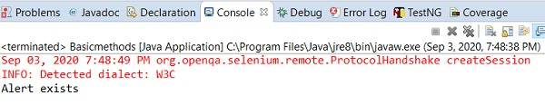 System.out.println("Alert exists");