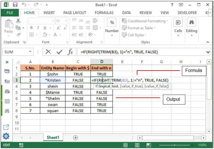=IF(AND(LEFT(TRIM(B3),1)="s",RIGHT(TRIM(B3),1)="n"),TRUE,FALSE)