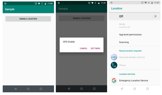 本示例演示如何檢視 Android 應用中的位置服務是否已啟用。