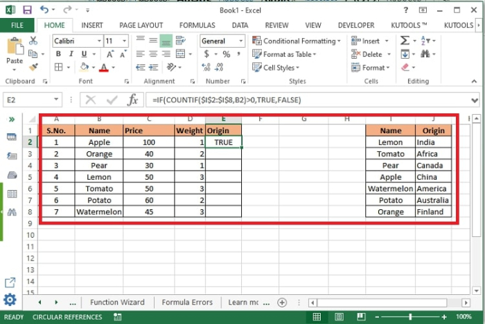 此公式也可用於檢查一個列表與另一個列表是否匹配