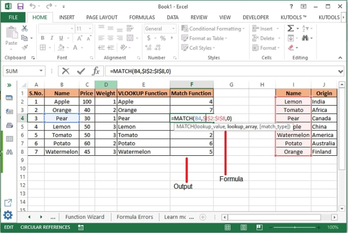 MATCH函式返回包含選定單元格值的單元格地址,而不是精確值。在我們在上述函式中使用的相同資料中,在新列中貼上以下公式。