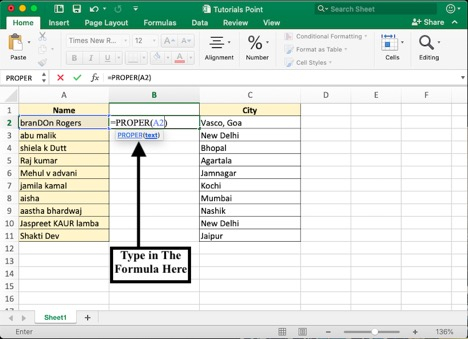 步驟2 - 要僅將單元格A2的首字母大寫,請在單元格B2中輸入以下公式