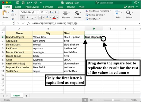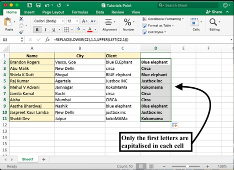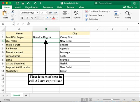 步驟3 - 您將看到C2中值的首字母“B”大寫。