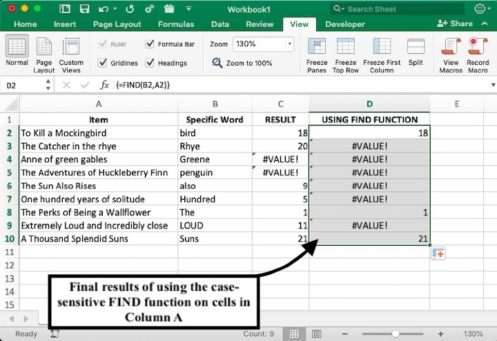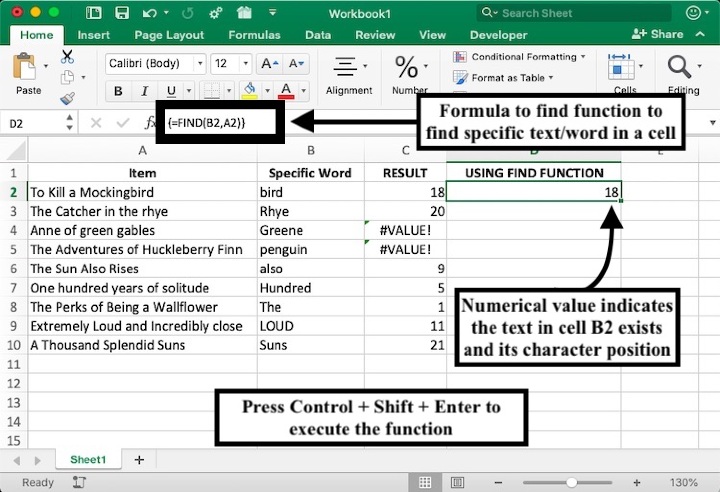 本教程向您展示瞭如何使用兩種不同的函式來驗證單元格是否包含特定單詞/文字/或子字串。FIND 函式比 SEARCH 函式提供更準確的結果,因為它區分大小寫。換句話說,它會在字母大寫時考慮字母。