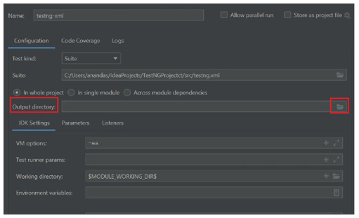 在從 IDE 執行 testing.xml 時,使用者必須在“新增配置” -> “監聽器”選項卡中啟用預設報告生成。以下螢幕截圖顯示瞭如何在 IntelliJ 中啟用預設報告生成。