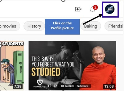 步驟 1 - 登入網站上的 YouTube 帳戶,然後點選螢幕右上角的個人資料照片。
