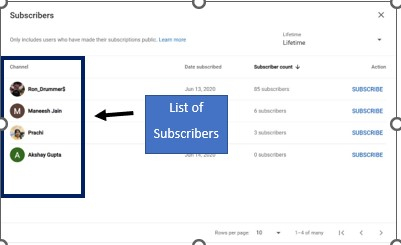 每分鐘都有超過 500 小時的影片上傳到 YouTube,因此在眾多內容中脫穎而出確實很困難。因此,檢視訂閱者的型別、數量和訂閱時間是監控頻道發展的好方法。它不僅方便創作者分析頻道發展速度,而且檢視誰訂閱了也是策劃新影片創意的好方法。在 YouTube 網站上,創作者可以獲得訂閱者數量以及頻道的訂閱者列表。他可以看到所有 YouTube 訂閱者的完整列表。但僅顯示將訂閱設定為公開的使用者。