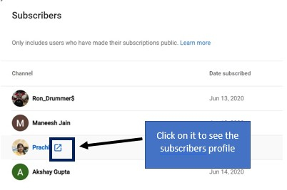 如果創作者想訪問訂閱者的“關於我們”頁面,只需點選訂閱者頻道的名稱即可點選訂閱者的個人資料圖示。如果創作者願意,他可以訂閱他們的頻道,這是一個不錯的快捷方式。