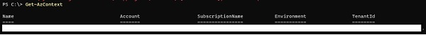 若要使用 PowerShell 在控制檯檢查登入的 Azure 使用者帳戶,可以檢查 Azure 的上下文,為此,會使用 Get-AZContext 命令。