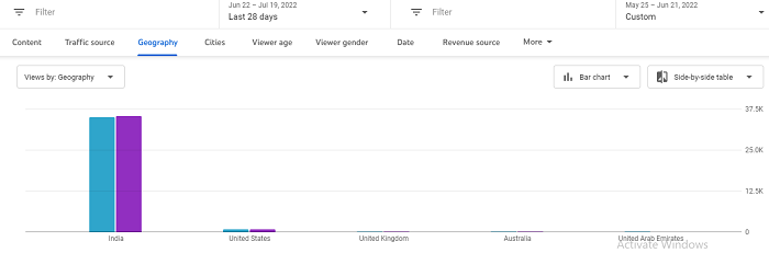您可以看到我的影片大部分觀看次數來自印度等等……同樣,您可以檢查其他引數。