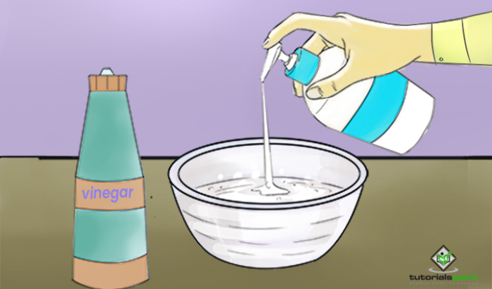 您可以選擇多種方法來準備清潔劑。例如,您可以使用小蘇打和白醋混合製成的糊狀物,或小蘇打和溫和清潔劑的混合物。使用白醋和小蘇打的組合去除頑固汙漬。還有其他選擇,例如使用白色牙膏作為清潔劑,我們稍後會討論。