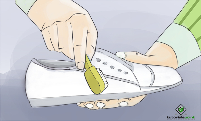 用軟毛刷去除鞋子上的鬆散汙垢。