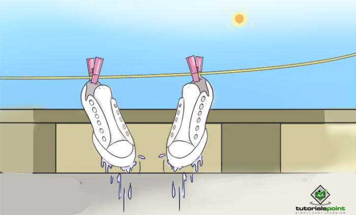 讓鞋子和鞋帶晾乾後再穿。