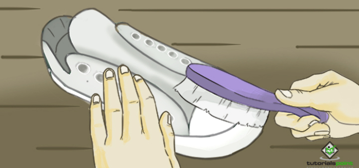 然後用硬毛刷清潔橡膠鞋底。