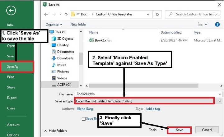 步驟 6:接下來,將檔案儲存為“啟用宏的工作簿”格式。