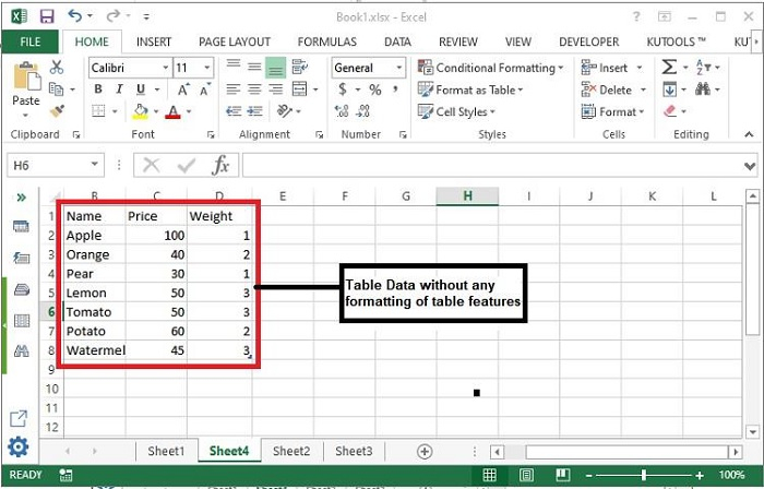 步驟5- 在這裡您可以看到表格格式已被刪除,但表格的顏色和樣式主題仍然保留。