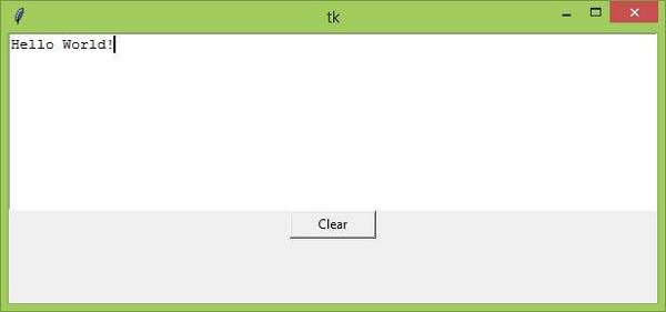 執行上述程式碼將建立一個文字小部件和一個按鈕,可用於清除輸入文字。