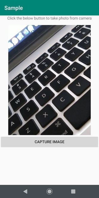 <?xml version="1.0" encoding="utf-8"?> <LinearLayout xmlns:android="http://schemas.android.com/apk/res/android" android:orientation="vertical" android:layout_width="match_parent" android:gravity="center_horizontal" android:layout_height="match_parent"> <TextView android:layout_width="wrap_content" android:layout_height="wrap_content" android:text="Click the below button to take photo from camera"/> <ImageView android:id="@+id/imageView" android:scaleType="centerCrop" android:layout_width="300dp" android:layout_height="400dp" android:src="@drawable/ic_image_black" android:layout_marginTop="16dp"/> <Button android:id="@+id/btnCaptureImage" android:text="Capture Image" android:layout_width="match_parent" android:layout_height="wrap_content" /> </LinearLayout>