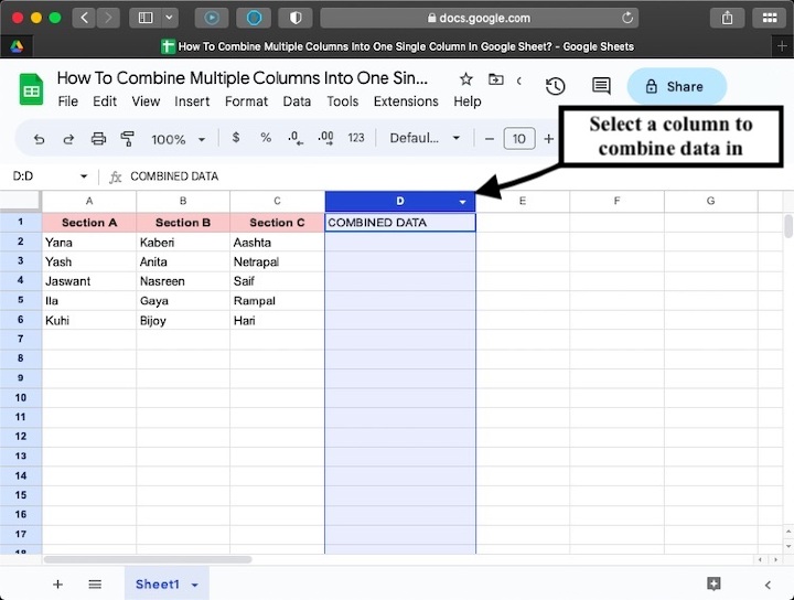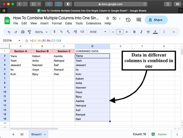 組織和分析分散在不同列中的資料的一種實用技術是將它們合併到一列中。無論您是想合併相關資訊還是建立合併檢視,Google 表格都提供強大的工具來有效地完成此任務。在本教程中,我們將探討兩種將多列合併為一列的簡單方法。