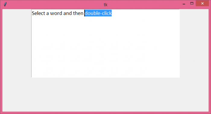 執行以上程式碼將顯示一個帶有預定義文字的文字控制元件。現在,選擇一個單詞並雙擊它以選擇該單詞。