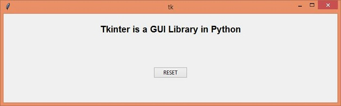 執行以上程式碼將顯示一個包含一個按鈕的視窗。一旦我們點選 RESET 按鈕,它將調整為預設大小,防止視窗手動調整大小。