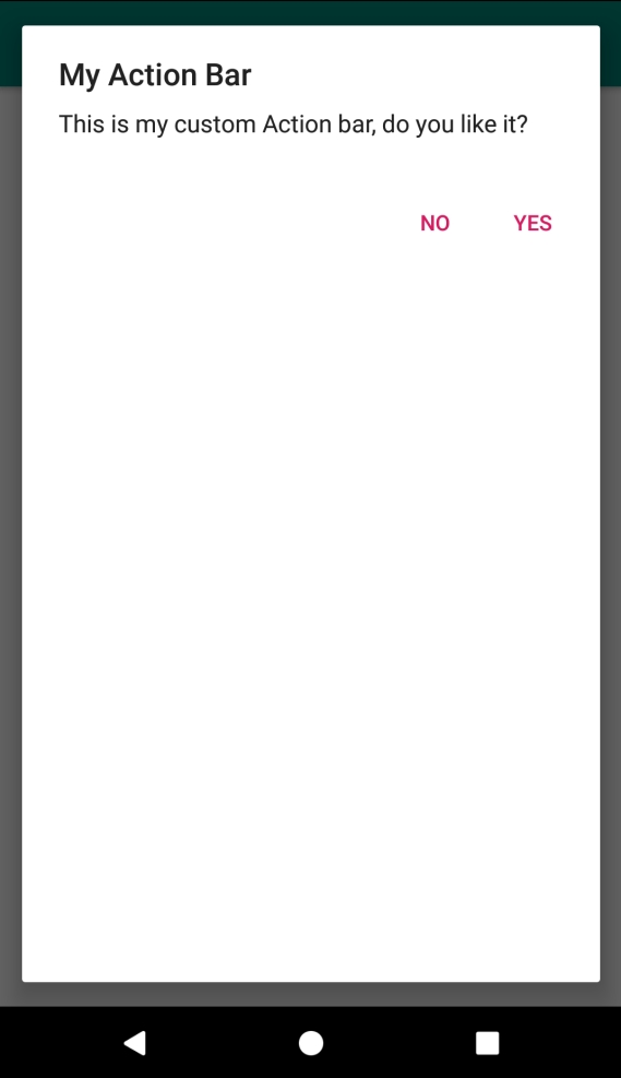 builder.setMessage("This is my custom Action bar, do you like it?");