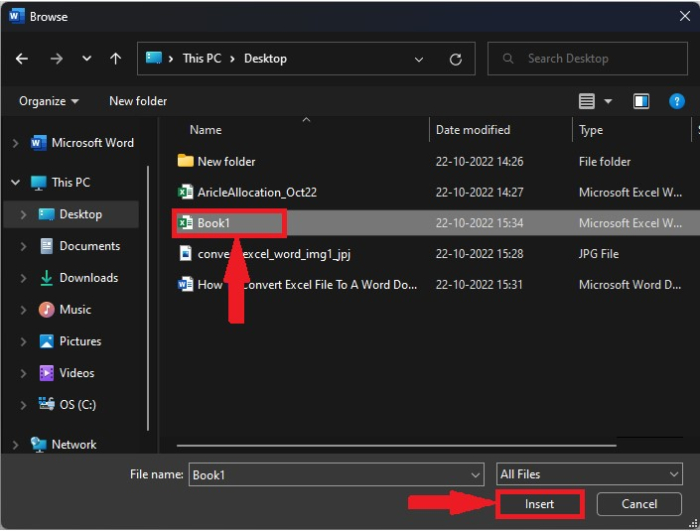 在這裡,我們將首先開啟Word檔案,然後將Excel檔案插入其中。讓我們來看一下透過插入物件將Excel轉換為Word文件檔案的簡單過程。