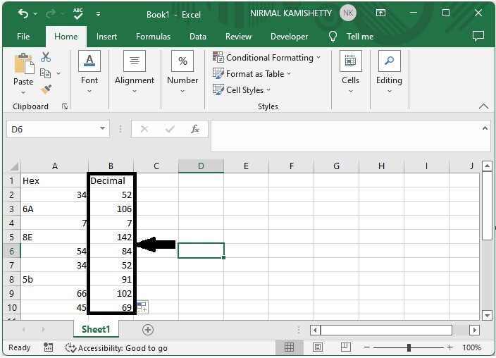 這裡我們將使用公式獲得第一個結果,然後使用自動填充柄獲得所有結果。讓我們來看一個簡單的步驟,使用公式在Excel中將十六進位制數轉換為十進位制數。