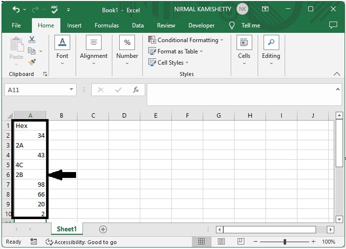 在本教程中,我們使用一個示例來演示如何在 Excel 中將十六進位制轉換為二進位制。
