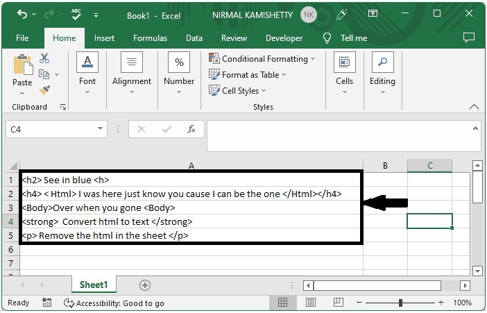 您是否曾經嘗試過在 Excel 中將 HTML 文字轉換為純文字?如果我們嘗試手動完成此操作,則可能是一個耗時且不準確的過程。HTML 文字和普通文字之間的區別在於,HTML 文字具有頁首和頁尾,這些頁首和頁尾在 "< >" 內表示。如果從 HTML 中刪除這些文字,則它們將被視為純文字。在本文中,我們將學習如何在 Excel 單元格中將 HTML 轉換為文字。在本教程中,我們將使用 VBA 應用程式來完成此任務。