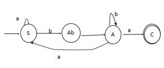 步驟 1 - 我們將給定的左線性語法轉換為有限自動機。