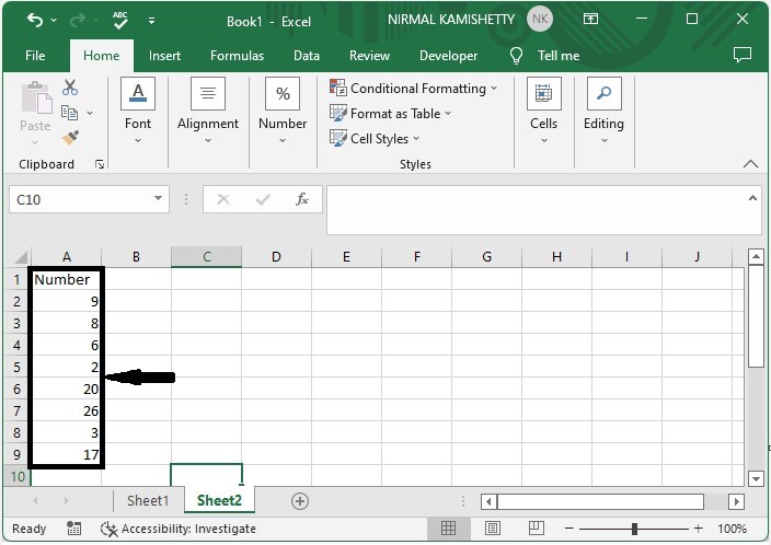 讓我們考慮一個包含數字列表的 Excel 表格,類似於下面的表格。數字應始終小於 26。