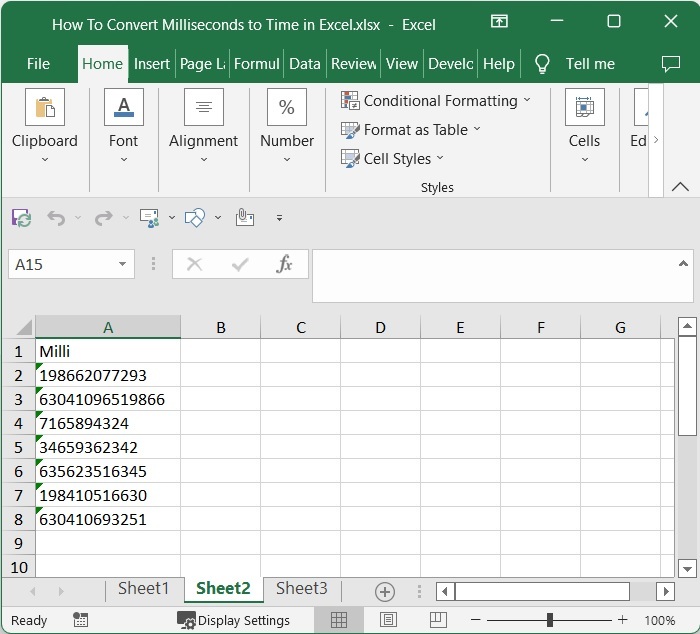 如果表格中的資料以毫秒為單位給出,那麼它可能會非常混亂,並且您將無法對其執行任何操作,因為它將是一個非常大的值。通常,一毫秒等於一秒的千分之一。如果我們需要根據毫秒找到持續時間,我們可以使用此過程。