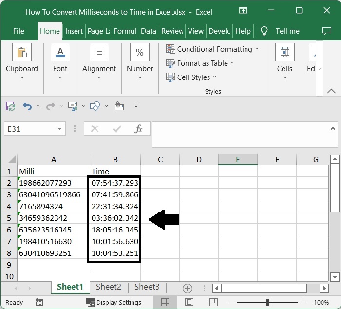 在本教程中,我們使用了一個簡單的例子來演示如何在Excel中將毫秒轉換為時間。