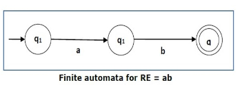 情況 2 − 對於正則表示式“ab”,我們可以構建如下所示的 FA −