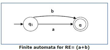 情況 3 − 對於正則表示式 (a+b),我們可以構建以下 FA −