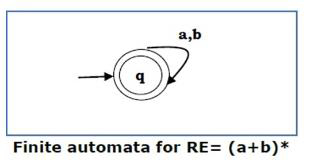 情況 4 − 對於 RE (a+b)*,我們可以構建如下所述的 FA −