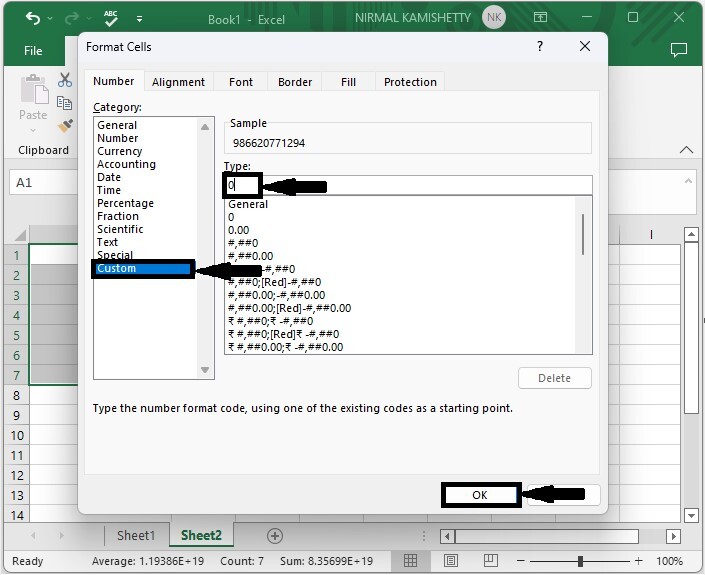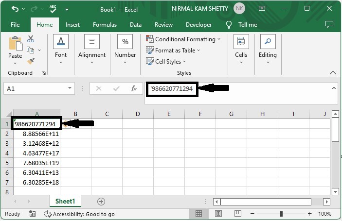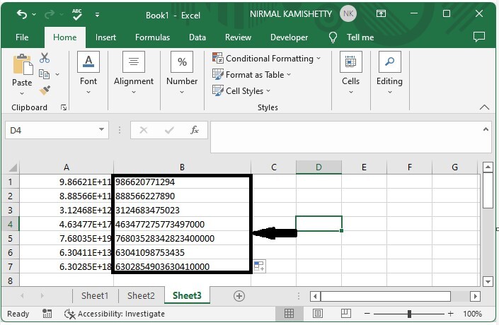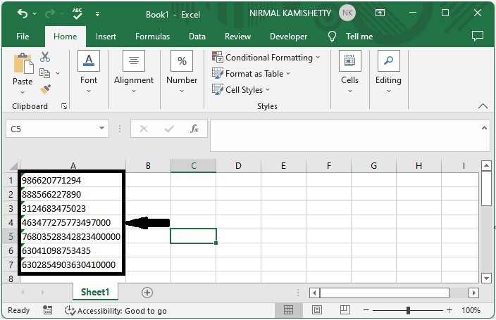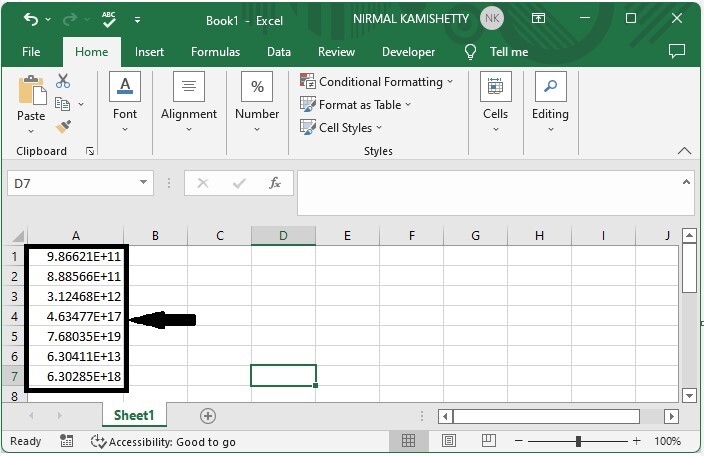 在這裡,我們將使用“格式”操作來完成任務。讓我們來看一個在Excel中將科學計數法轉換為文字的簡單步驟。