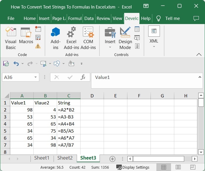 假設您已將公式作為字串儲存在 Excel 表格中,以便稍後計算;如果我們想使用它們,我們可以這樣做,因為它們儲存為字串而不是公式。手動將它們轉換為公式可能非常耗時。因此,我們可以使用使用者定義函式以更快的方式完成我們的任務。