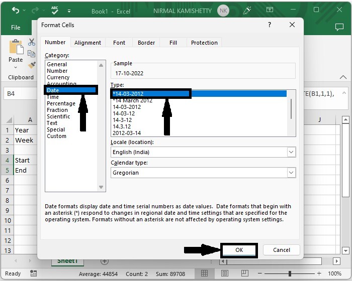 為此,選擇這些值,然後右鍵單擊並選擇“檢視程式碼”,單擊“日期”,然後單擊“確定”以完成我們的過程。