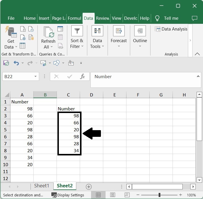 在這裡,我們將首先複製資料,然後使用高階篩選器僅貼上唯一的結果。讓我們看一個簡單的過程,瞭解如何複製一列並在Excel中僅貼上唯一記錄。為了儘可能高效、快速地完成我們的任務,我們必須藉助高階篩選器。