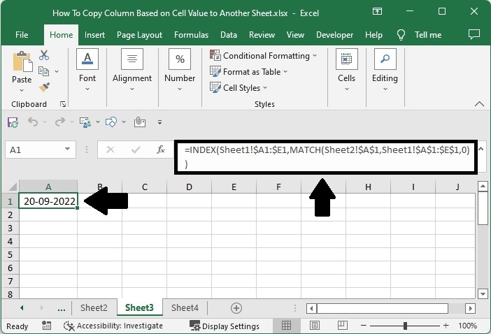 現在,單擊另一個工作表上的空白單元格,並輸入以下公式:
