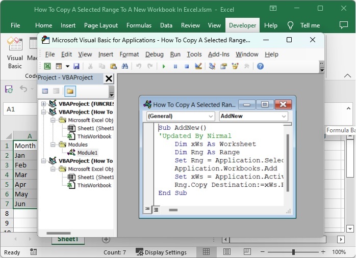 您是否遇到過想要將現有工作表中的選定資料複製到另一個工作表的情況?如果我們嘗試手動執行此操作,這將是一個耗時的過程,因為我們需要建立一個新工作簿,然後複製資料。我們可以藉助 VBA 應用程式來自動化此任務,因為它無法在 Excel 中直接完成。在本文中,我們將學習如何使用 VBA 應用程式將選定的區域複製到 Excel 中的新工作簿中。