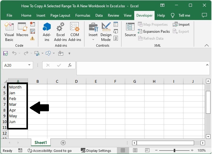 然後將工作表另存為啟用宏的工作簿,然後單擊 F5 執行程式碼;將建立一個新工作簿,並將選定的資料從單元格 A4 開始貼上,如下面的影像所示。