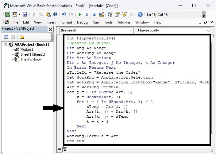 在這裡,我們將插入一個VBA模組,然後執行它來完成任務。讓我們來看一下在Excel中反向複製貼上列的簡單步驟。