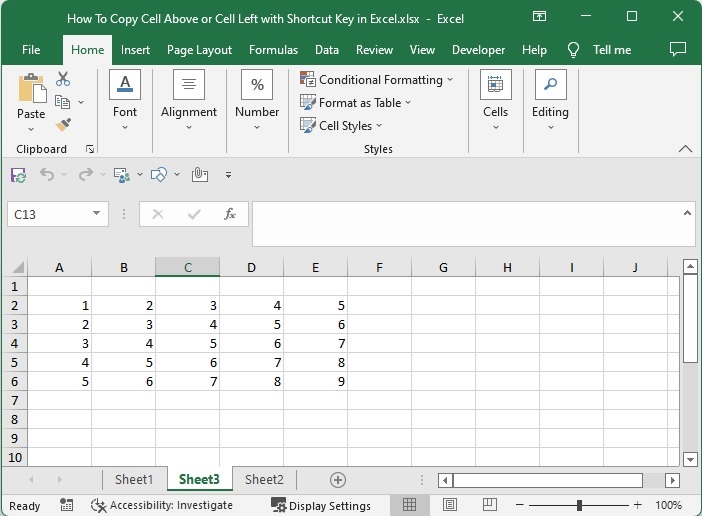 這裡我們將直接使用命令複製左側單元格中的資料。讓我們來看一下使用快捷鍵在Excel中複製左側單元格的簡單步驟。