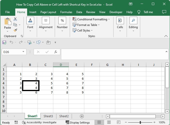 這裡,我們首先點選要複製單元格下方的單元格,然後使用命令複製單元格。讓我們來看一下使用快捷鍵在Excel中複製上方單元格的簡單步驟。