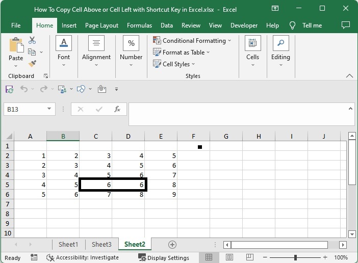 在本教程中,我們使用簡單的示例演示瞭如何在Excel中使用快捷鍵複製上方或左側單元格。
