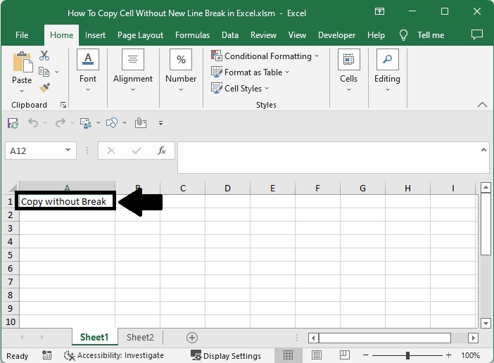 通常,在Excel中,當我們從一個sheet複製資料並嘗試將其貼上到記事本中時,游標會在貼上資料後移動到下一行。如果您不想將游標移動到下一行,可以將其保持在同一行。我們可以藉助VBA應用程式來完成此任務,因為它無法直接在Excel中完成。